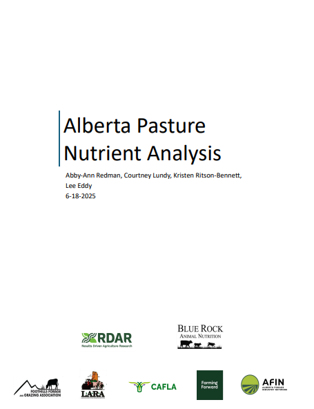 We’re pleased to share the full Alberta Pasture Nutrient Analysis (2021–2024) report, led by Abby-Ann Redman, Courtney Lundy, Kristen Ritson-Bennett, and Lee Eddy, in collaboration with regional forage associations across the province. This project was funded by RDAR and supported by partner organizations including Farming Forward.