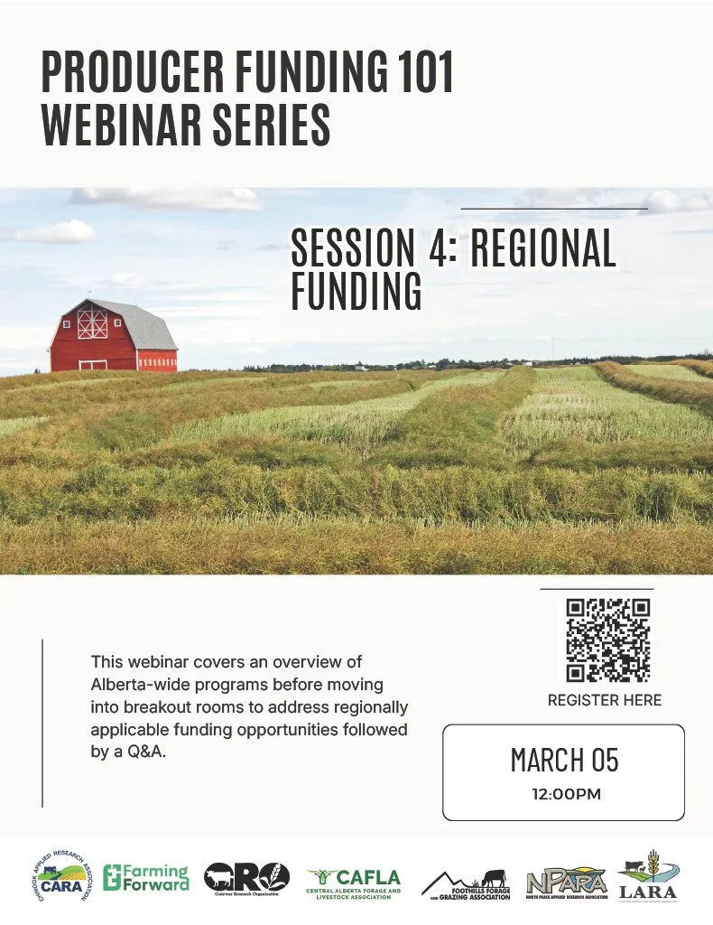 This session starts with an overview of Alberta-wide agriculture funding programs, then moves into regional breakout rooms to highlight funding opportunities specific to different areas. A Q&A will follow to help producers connect programs to their own operations.